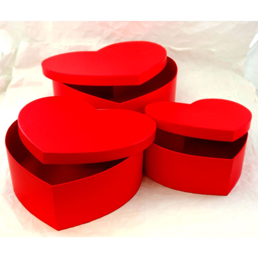 KRABICE SRDCE 3ks 28x11cm 24x10 20x8,5*ČERVENÁ