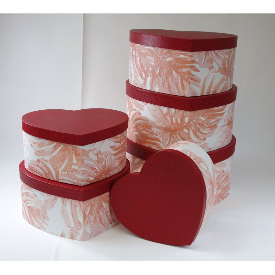 KRABICE SRDCE 5ks 42x18x37cm 38x14x34 35x11x31 32x8x28 29x5x26*ČERVENÁ