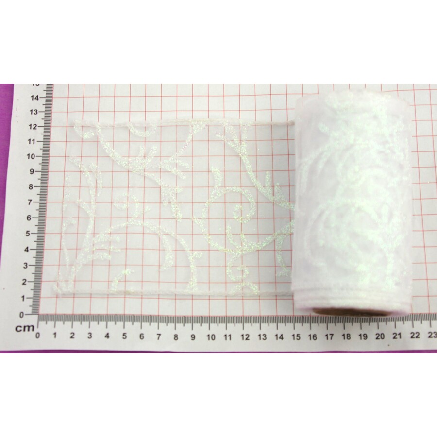 ORGANZA GLITR 369 12cmx10yd*BÍLÁ 50
