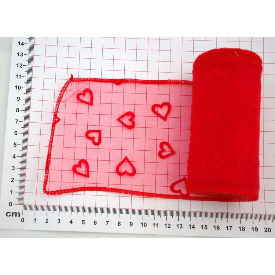 ORGANZA TISK SRDCE 12cmx10m*ČERVENÁ