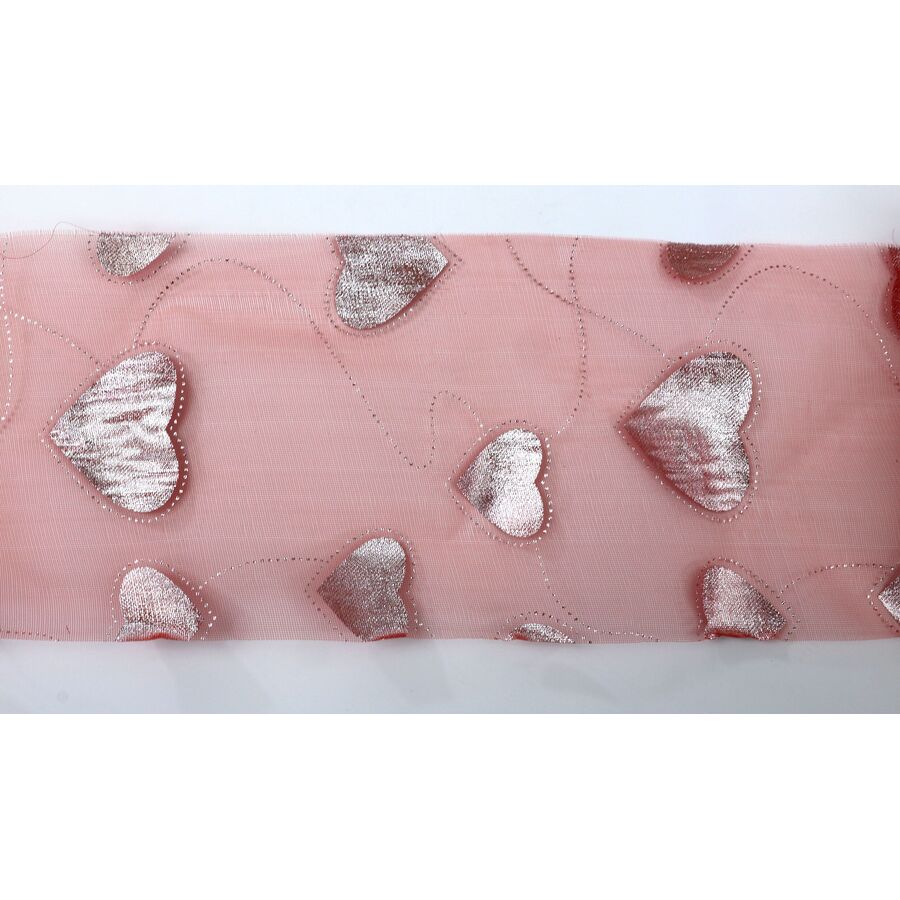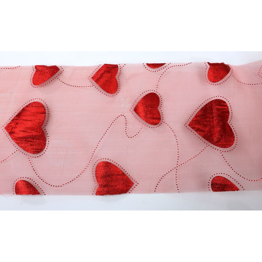 ORGANZA TISK SRDCE 12cmx10yd*ČERVENÁ