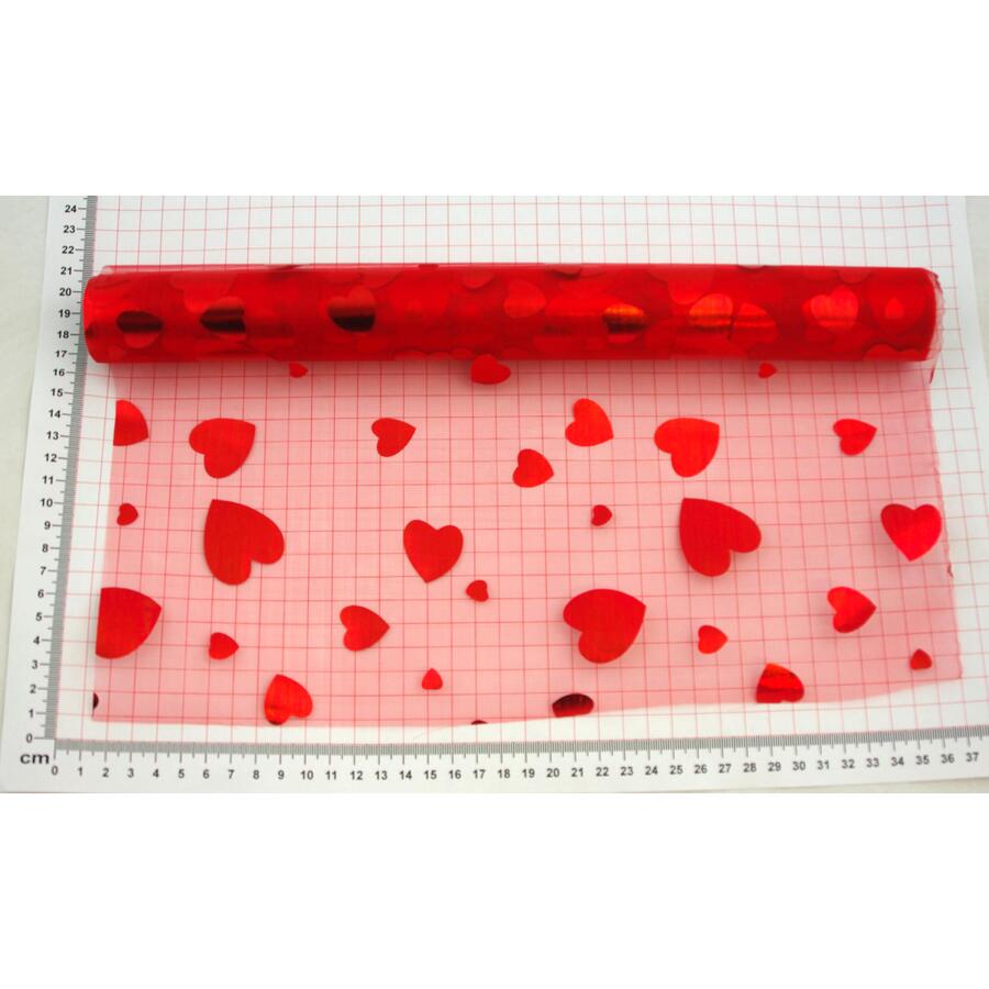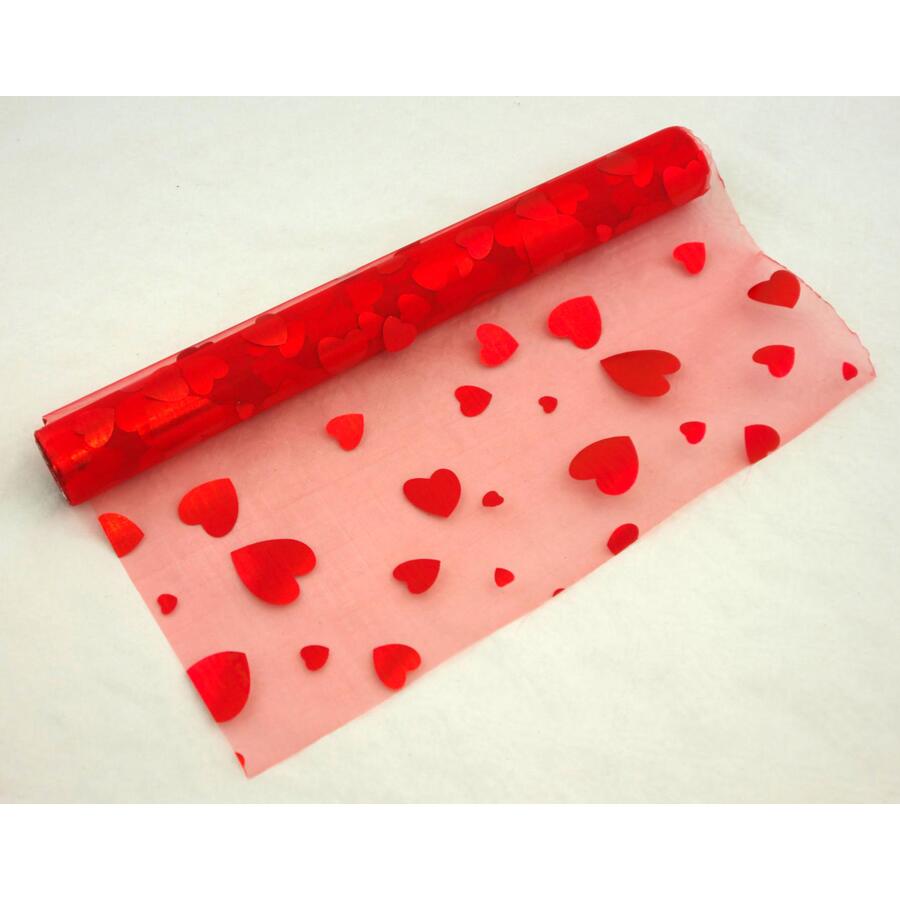 ORGANZA TISK SRDCE 36cmx5yd*ČERVENÁ