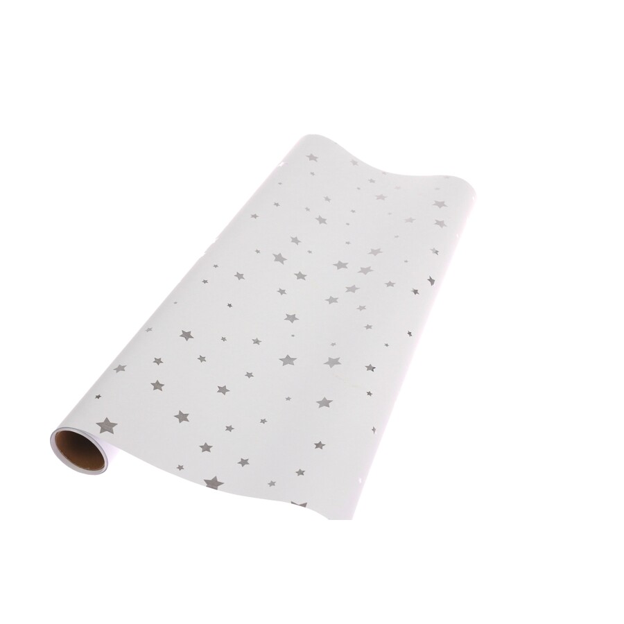 ROLE PLAST HVĚZDA 50cmx10yd*BÍLÁ+STŘÍBRNÁ