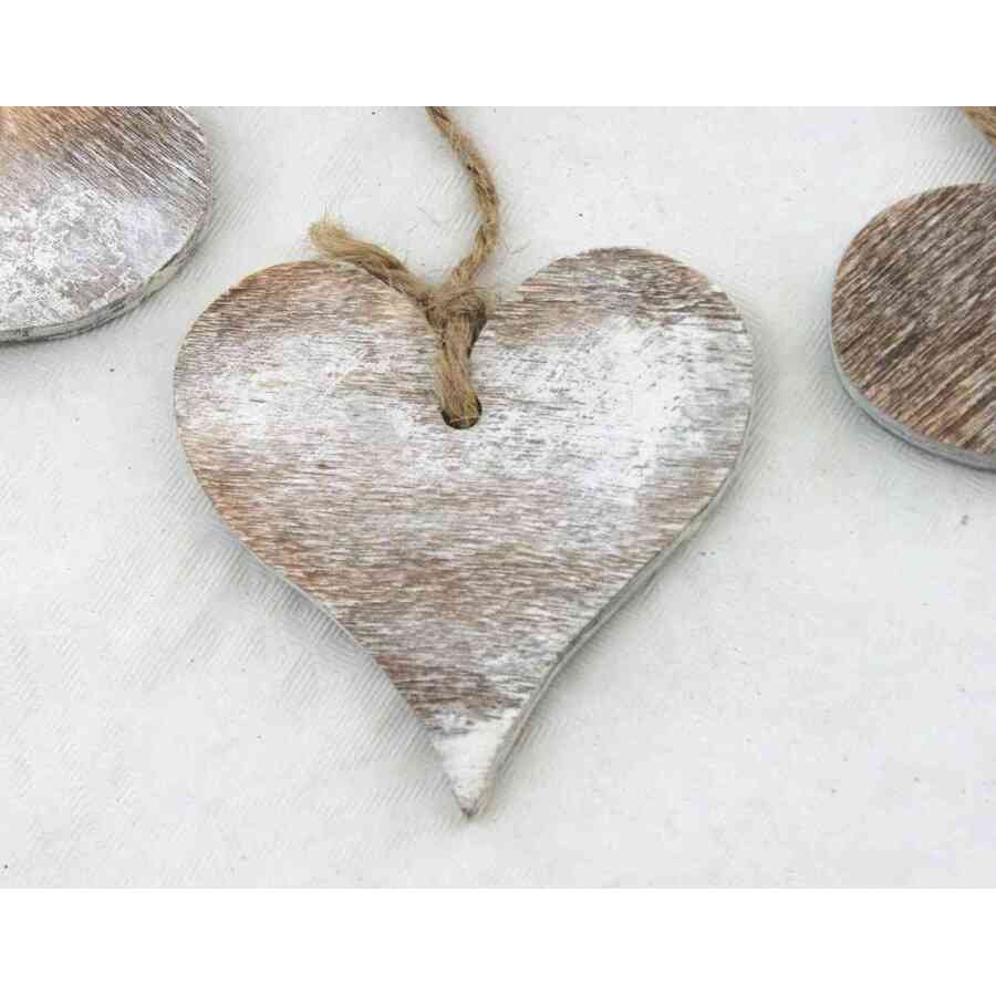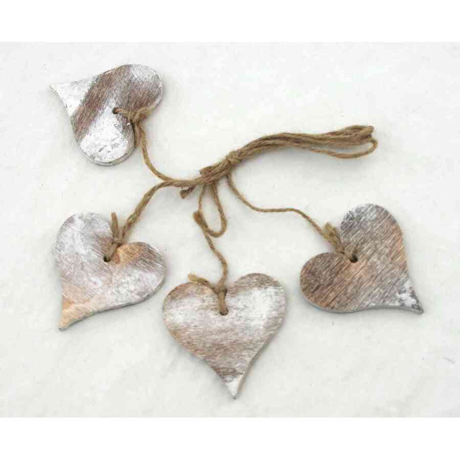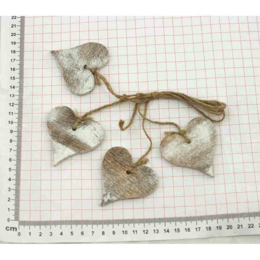 ZÁVĚS SRDCE DŘEVO 4ks 6cm*BÍLÁ